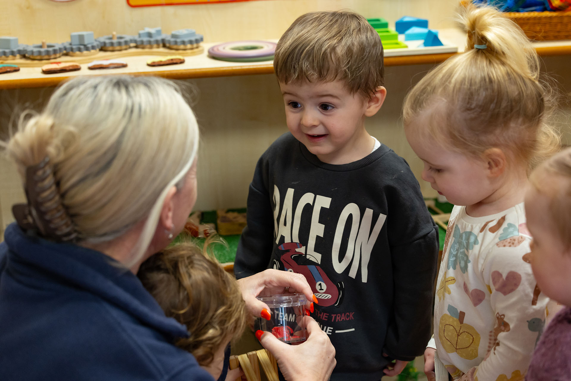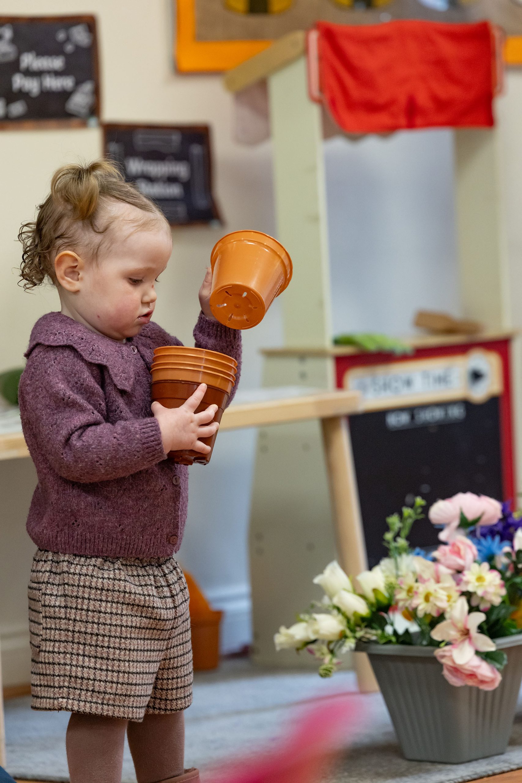 The room provides continuous access to a wide range of engaging areas, including mark making, water and sand play, a cosy reading corner, a music area, small world play, and an imaginative role play space. Our activities and learning experiences are carefully planned around the children’s interests, individual next steps and stages of development, ensuring that every child is supported as they grow and learn.