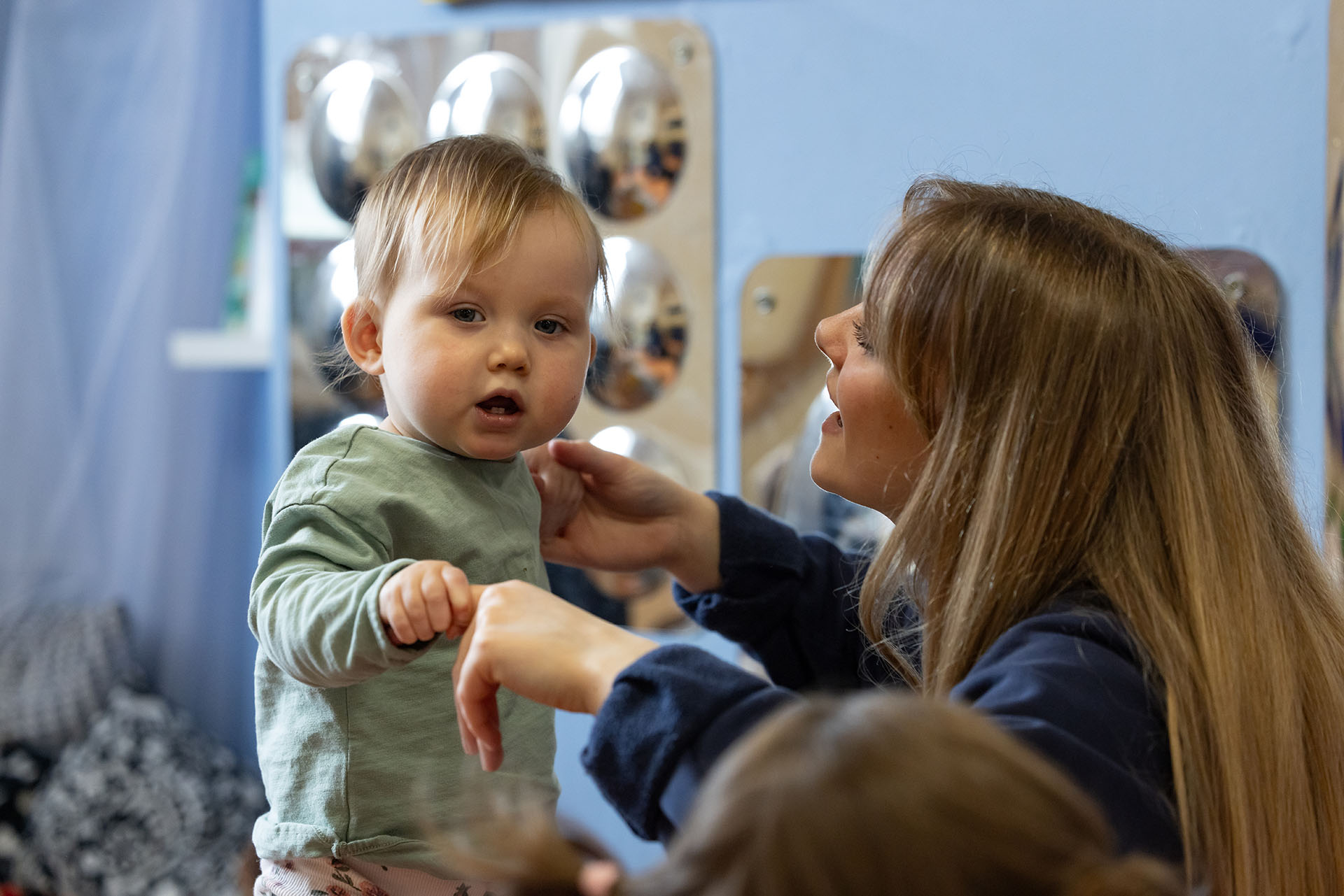 The room features a spacious main area thoughtfully organised to offer sensory and learning experiences across all areas of development. Babies can enjoy a cosy reading corner, an engaging sensory space, opportunities for music and movement, and imaginative small world play. We incorporate Heuristic play, treasure baskets and exploratory activities into our day, encouraging curiosity and independent discovery. Every child’s individual routine is respected and followed closely, ensuring they remain at the heart of everything we do. Our Sunbeams also benefit from a separate sleep area, designed to be calm and soothing, where gentle sleep sounds help create a peaceful environment.
